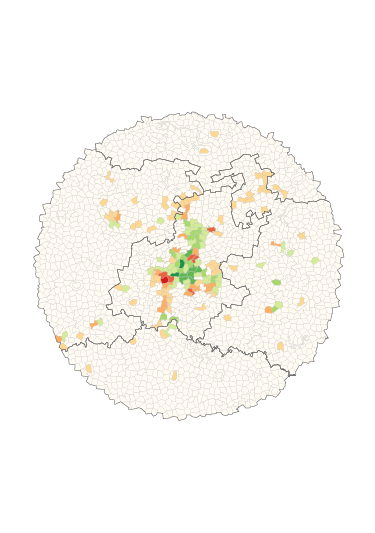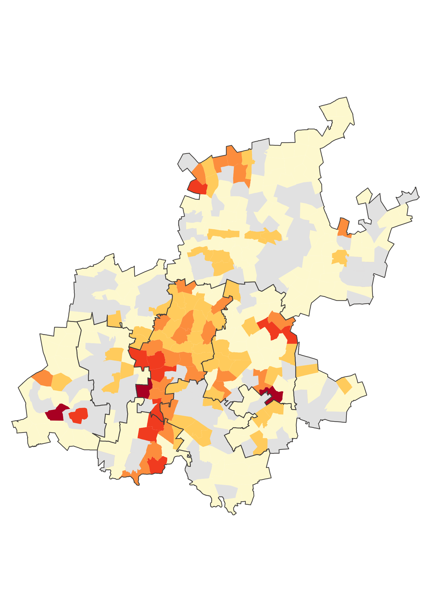 In the May 2024 map we experiment with quantifying economic activity at a ward level across the province using satellite imagery. The resulting map – built on satellite imagery of nighttime lights, population data and subregional Gross Value Added (GVA) – shows modelled distribution and change in GVA at a ward level between 2012 and 2021